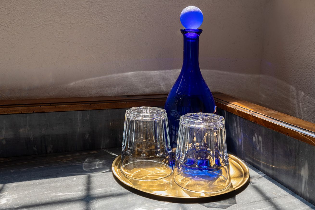 Non troverete acqua in bottiglie di plastica ma brocche di vetro, che potrete riempire ogni volta che vorrete con acqua microfiltrata.